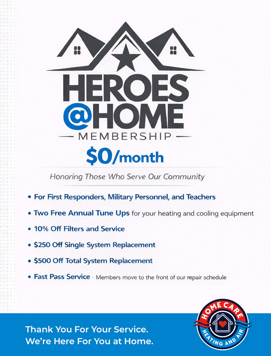 At Home Care, we know that your HVAC services can sometimes be a strain on your budget, which is why we offer a range of promotions throughout the year to help keep your HVAC or indoor air quality expenses to a minimum. Here’s a quick list of our latest promotions!